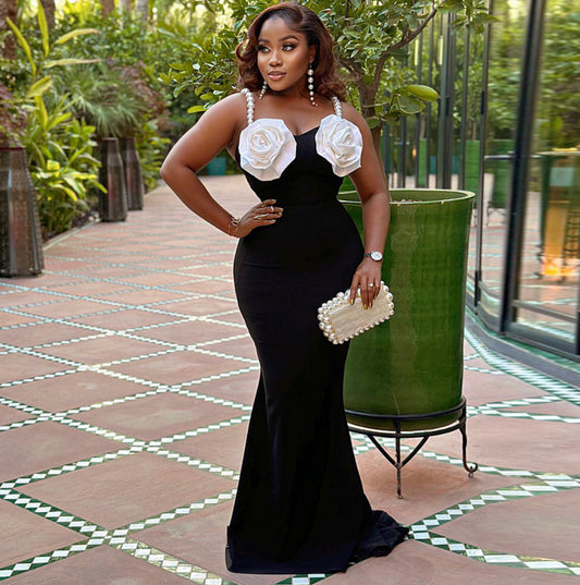 Black Pearl Strap Bodycon Mermaid Sexy Cocktail Dress