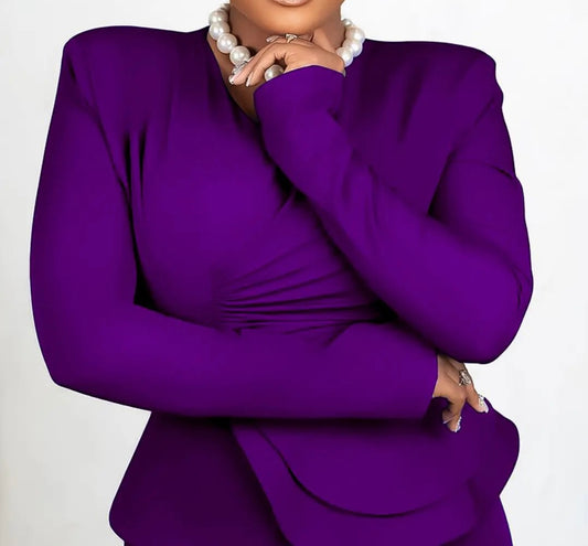Purple Beaded Asymmetrical Inclined Shoulder River BodyCon Jumpsuit Romper with Belt Wide Legs