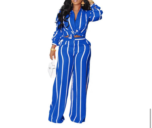 Long Sleeve Striped Wide Leg Matching Pant Set