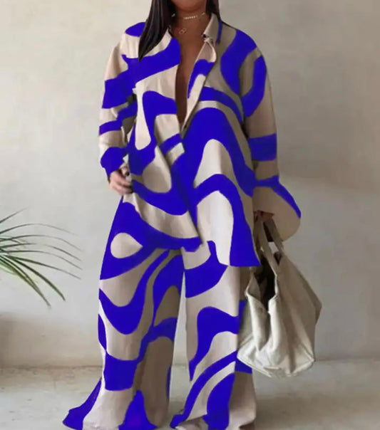 Long Sleeve Loose Fitted Wide-Leg Pant Set