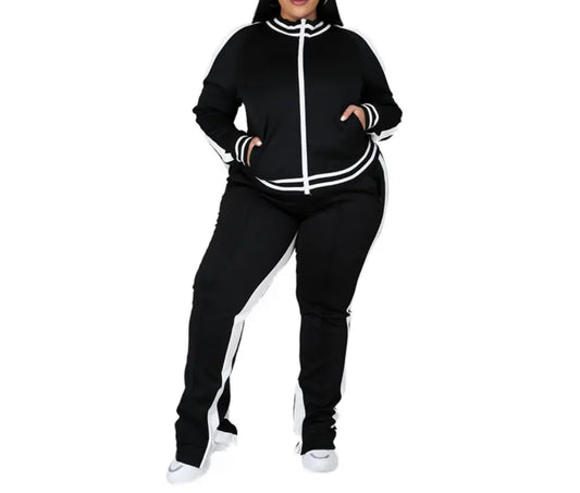 Plus Size Two Piece Cold Shoulder Striped Flared Tracksuit