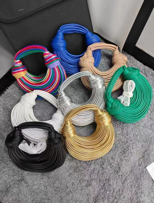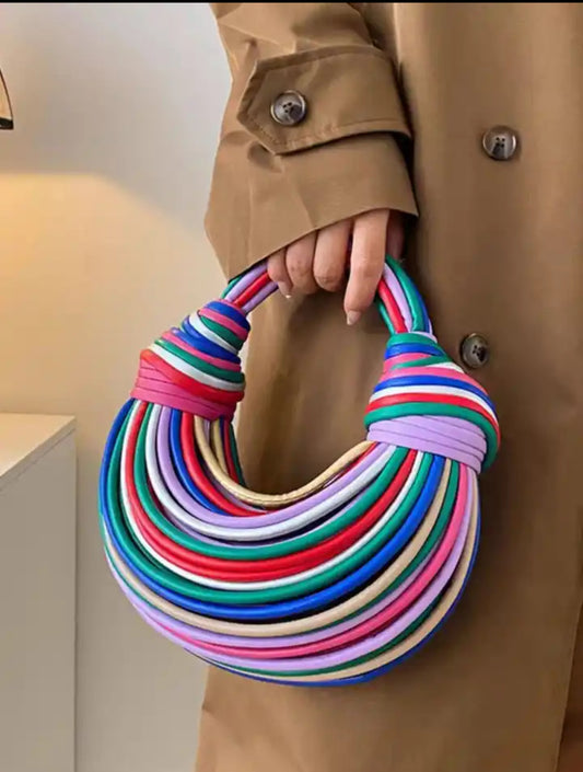 Multi-colored Crossbody Noodle Rope Knotted Pulled Hobo Crescent Shape Evening Clutch