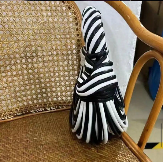 Black and White Crossbody Noodle Rope Knotted Pulled Hobo Crescent Shaped Evening Clutch