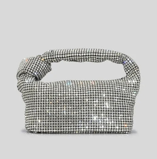 Silver Rhinestone Top Handle Knotted Hobo Styled Handbag